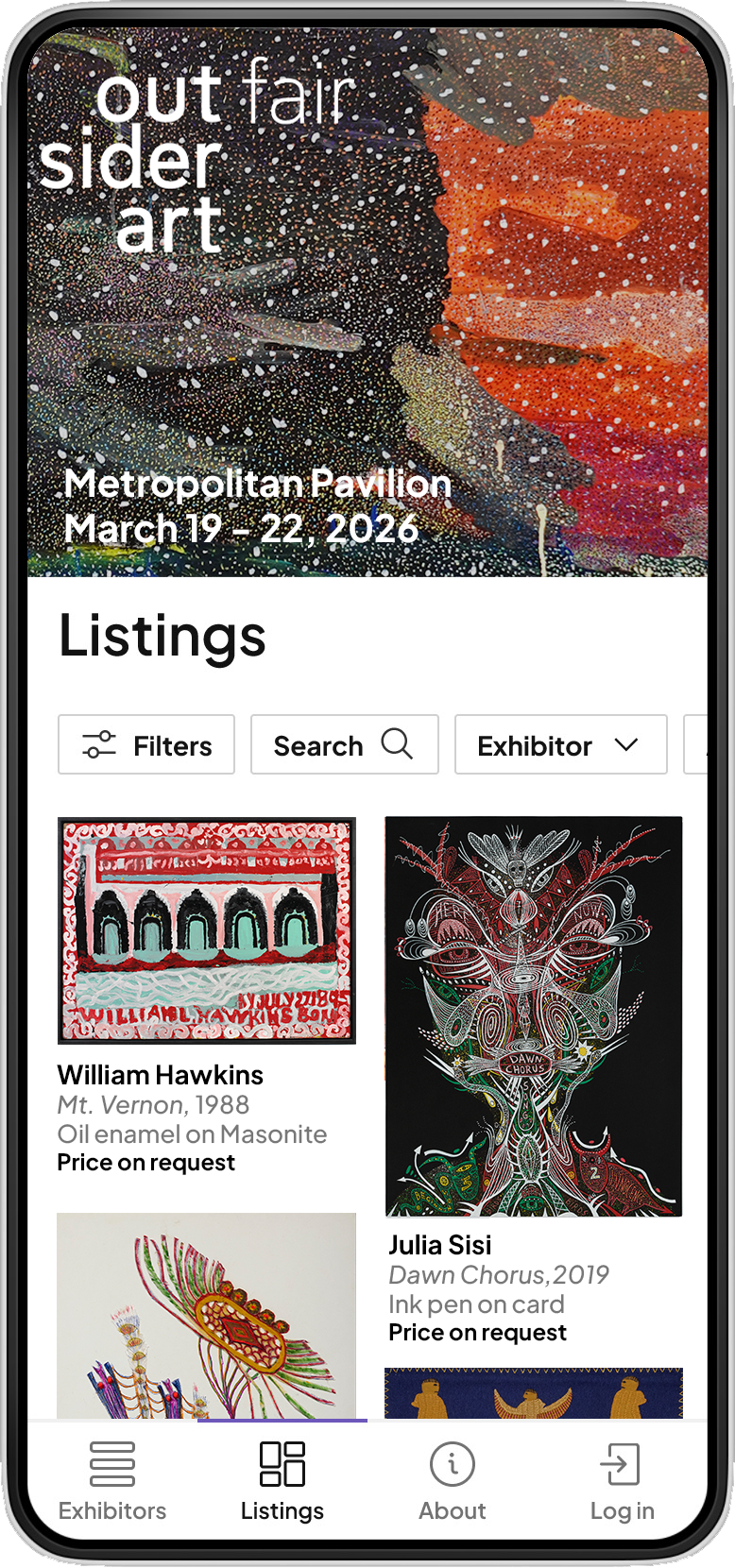 Build interactive, visually stunning profiles that help collectors discover and connect with your artworks through Outsider Art Fair's online platform.