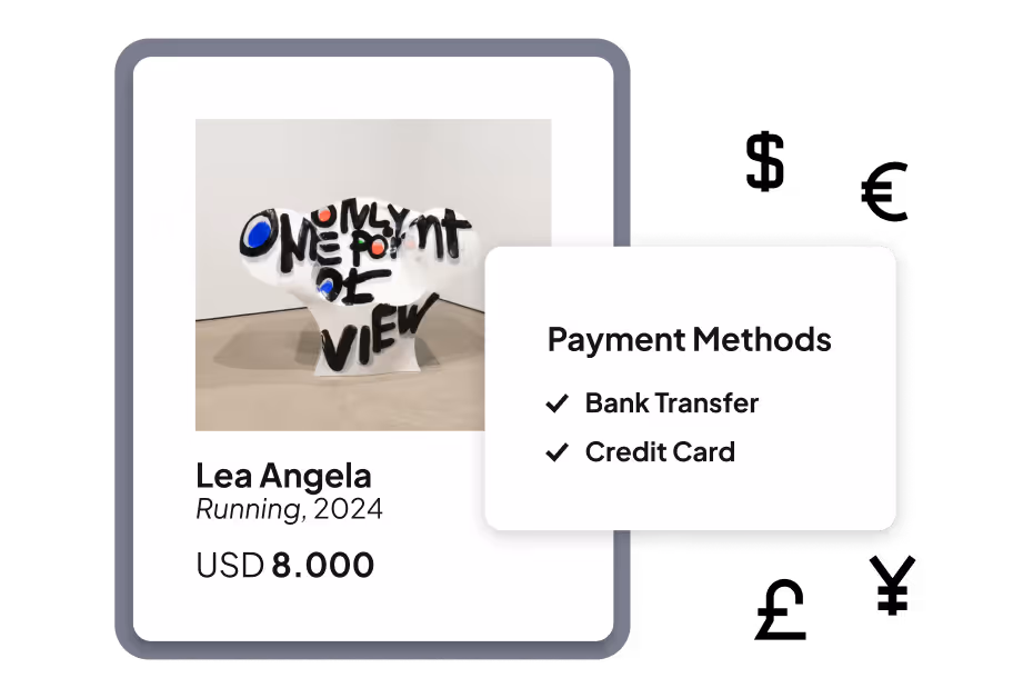 Unlock new opportunities for your creative practice by building your own customizable online Storefront. Showcase your work in online viewing rooms, manage sales with ease, and connect directly with collectors. Streamline payments, ensure authenticity, and protect your work’s provenance while focusing on what you do best—creating art.